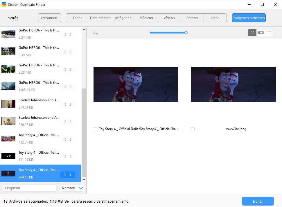5. En cada grupo, visualiza y previsualiza los archivos para decidir cuál o cuáles eliminar.