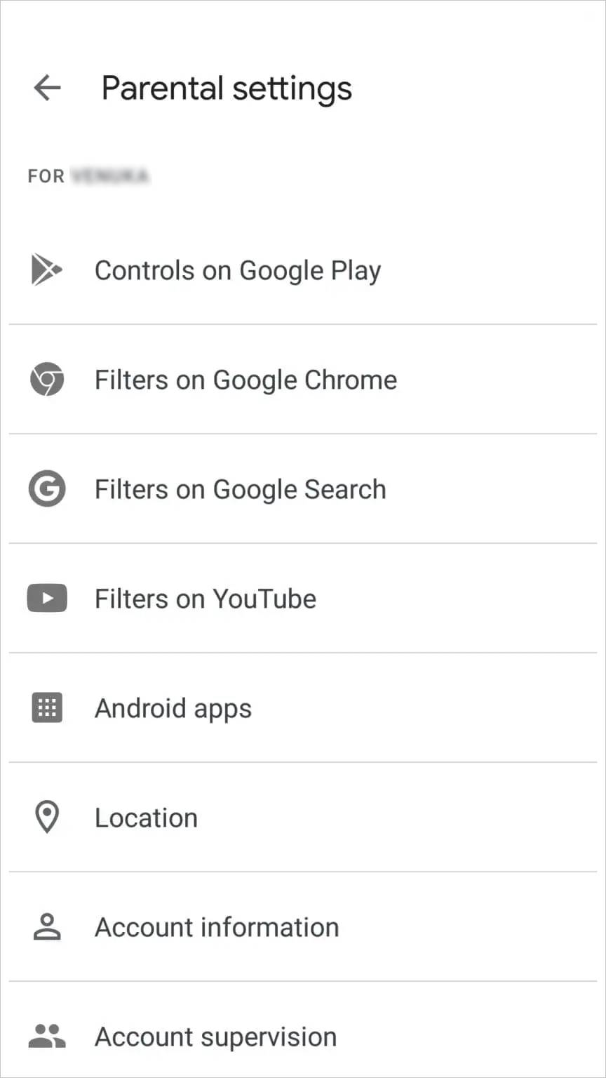 4. Em Parent settings, escolha Filtros no Google Chrome.
