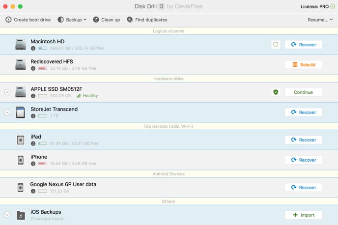 Disk Drill is one of the best data recovery software for Windows and Mac. It can help you recover 200+ file types. It is not only about data recovery, but it also allows you to clean up computer and backup data.