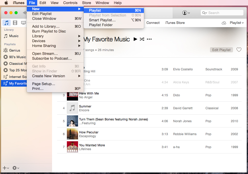 2. Go to File > New > Playlist, a new music Playlist folder appears, enter a name- My Favorite Music. At last drag-n-drop your favorite music videos into this Playlist folder.