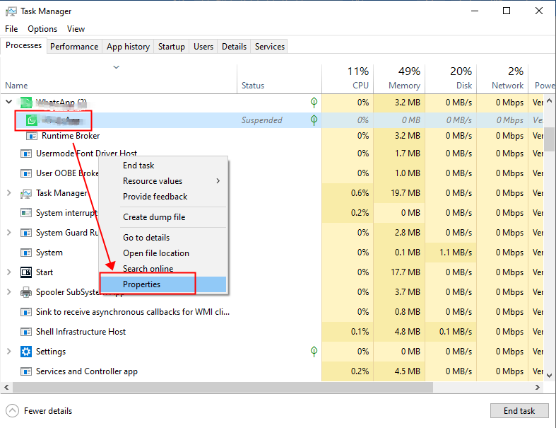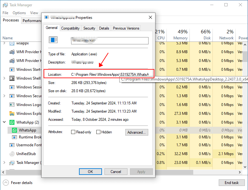 2. If you don't know where the app's exe file is, you can run the app, open Task Manager, find the target app, right click it and choose "Property", you will be able to check the location of this app.