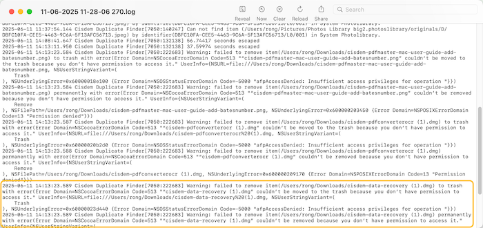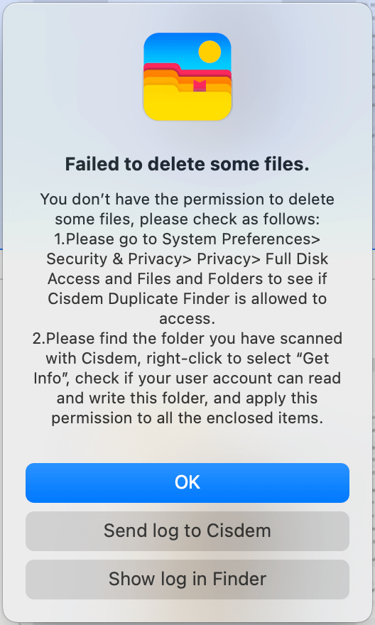 In some cases, users may get error messages when trying to delete duplicate files. Below, we will guide to you how to troubleshoot it by reviewing the log files of Cisdem Duplicate Finder.