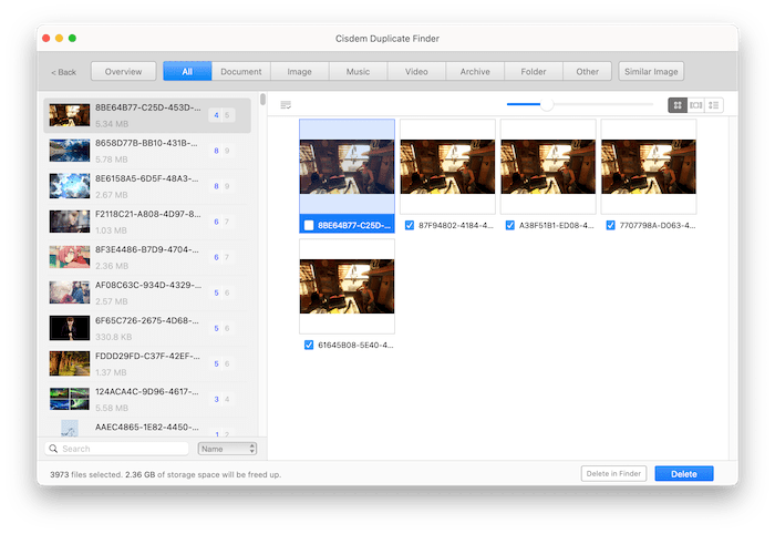 Cisdem auto selects all the duplicate files for deletion after the scan completes, you can directly click the Delete button to delete all the duplicates with one click after reviewing.