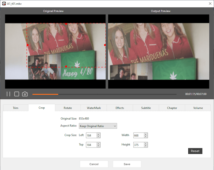 3. You can select an output aspect ratio for cropping with four options: Keep Original Ratio, 16:9, 4:3 and Any.