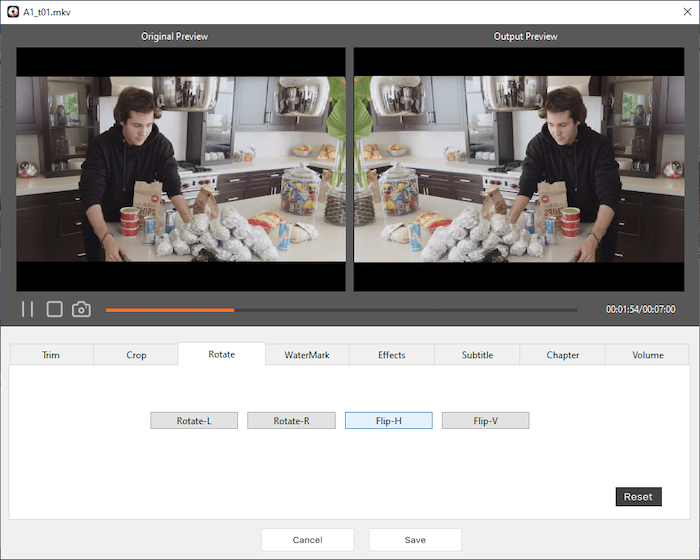 1. Navigate to Rotate tab, each of the four buttons specifically represents one specific way to rotate or flip the video, click the button as your requirement.