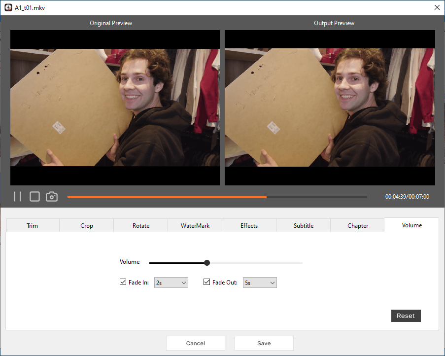 1. In some cases, the voice of the original video is too loud or too low, if you want to adjust it, you can navigate to Volume tab, slide the volume bar as you like.