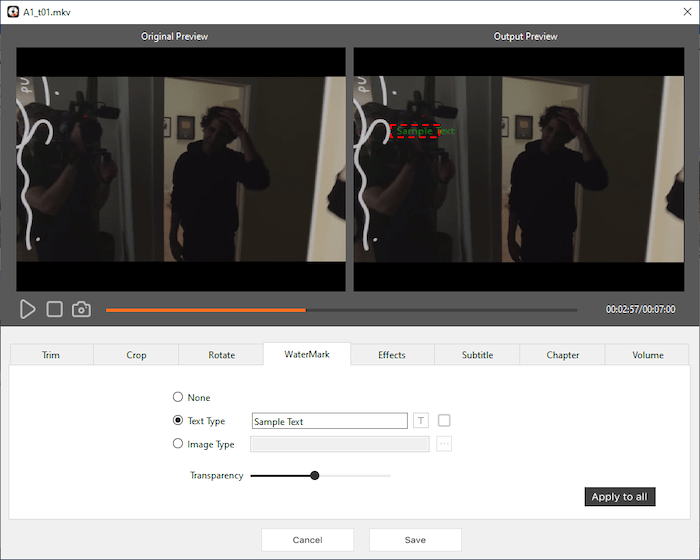 1. Navigate to Watermark tab, you are allowed to add any text watermark or image watermark to the video.