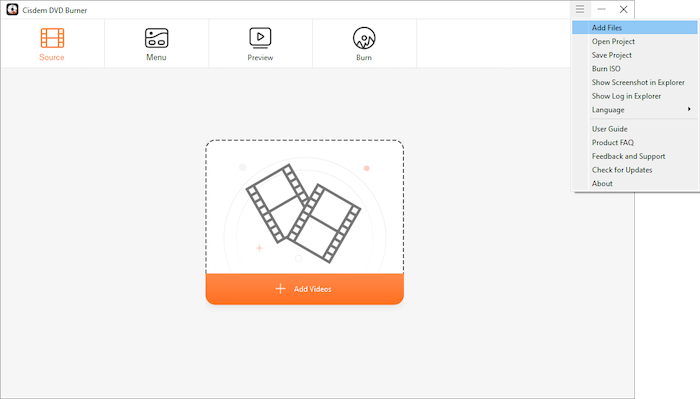 Cisdem DVD Burner supports 200+ video formats input, there are 3 ways to add video files: