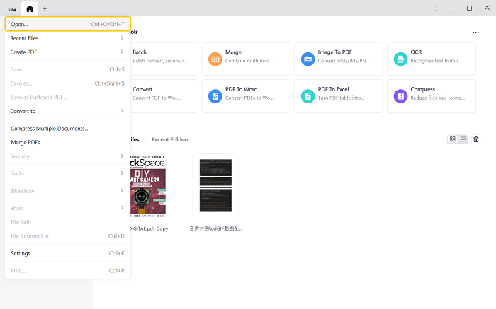 For your convenience to read and work with PDF files, Cisdem PDFMaster provides several ways for you to open the PDF files.