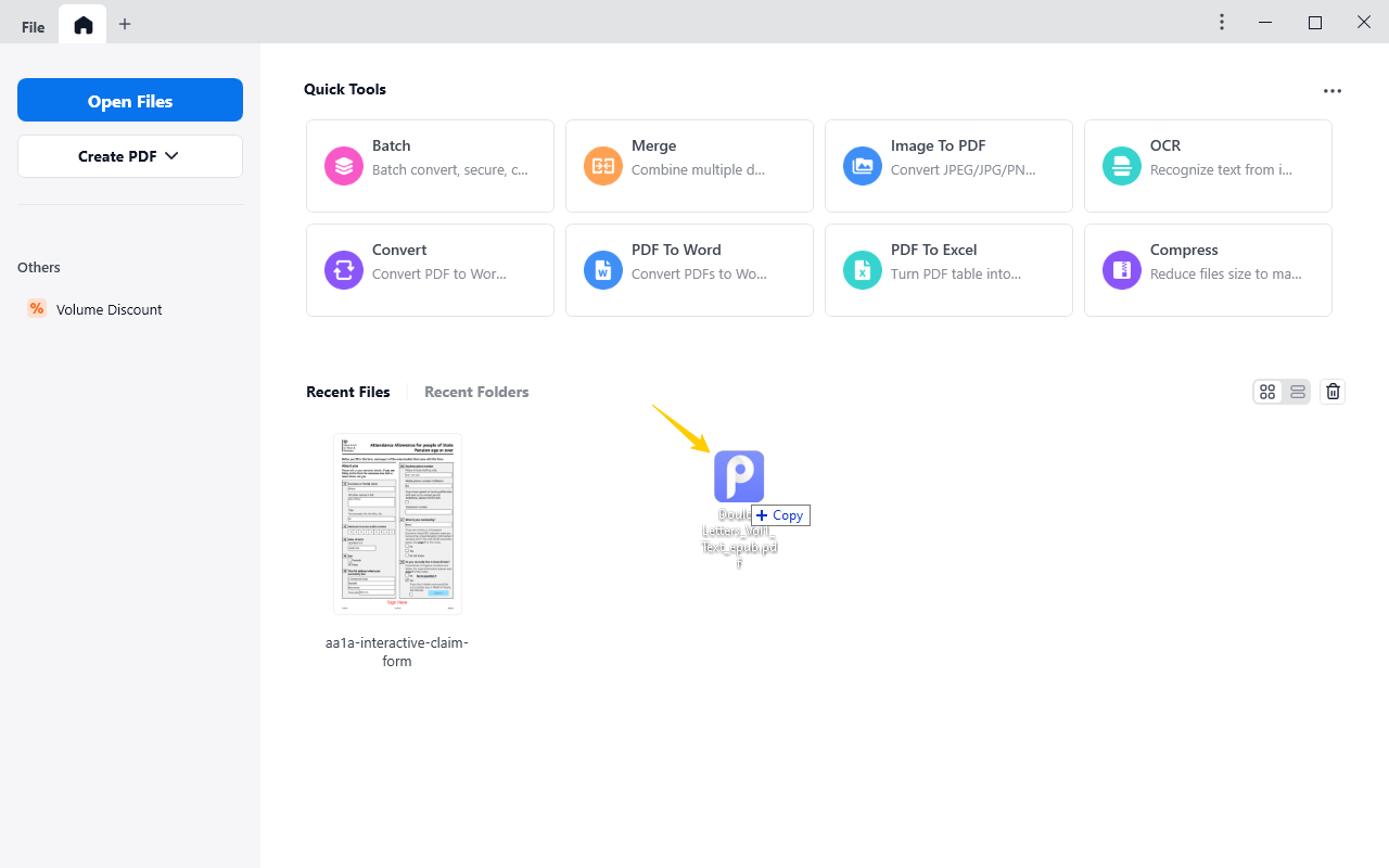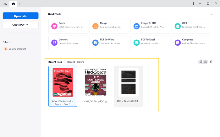 Cisdem will list the recently opened PDF files under Recent Files, also it will list the folder of those recently opend PDF files under Recent Folders.