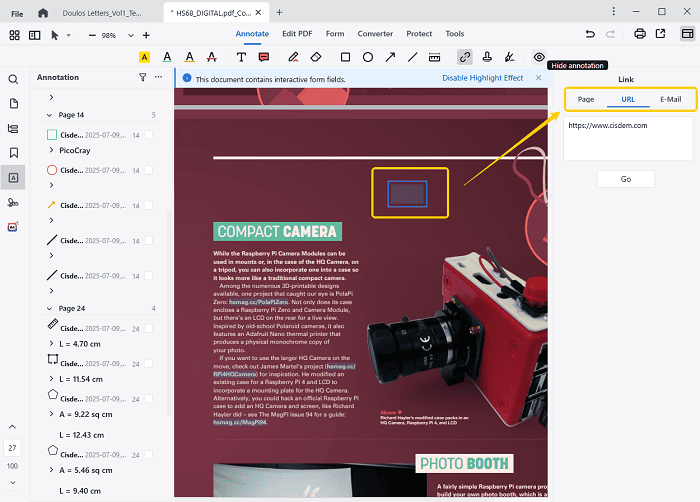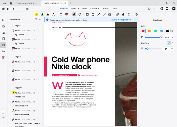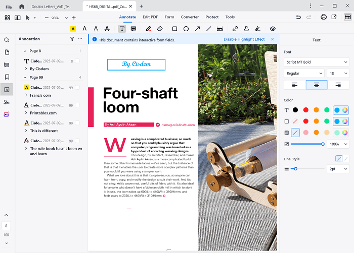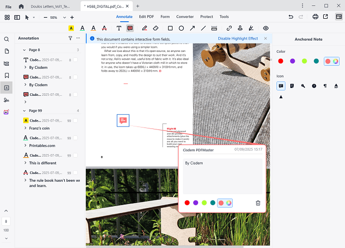 When you want to share a PDF file to others, and it is much more effective to directly add comments in the PDF file compared with writing the comments in email or a paper. Cisdem PDFMaster provides you a vaious kinds of tools to add coments into a PDF file, click