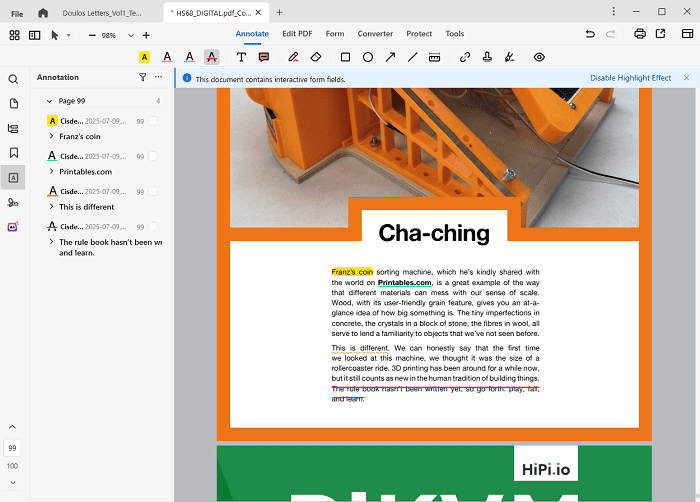 You can use Cisdem PDFMaster to compare the content of two PDF files, find and mark any differences easily.