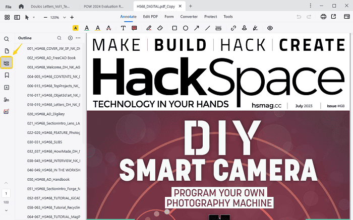 on the left side panel, it will display the outlines of your PDF if there it is.