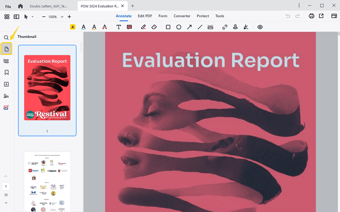 on the left side panel, it will list every page's thumbnail of your PDF file so that you can easily navigate the target page.
