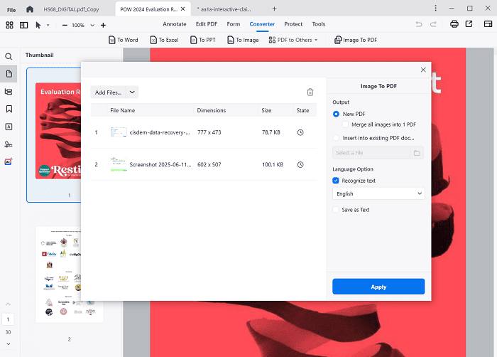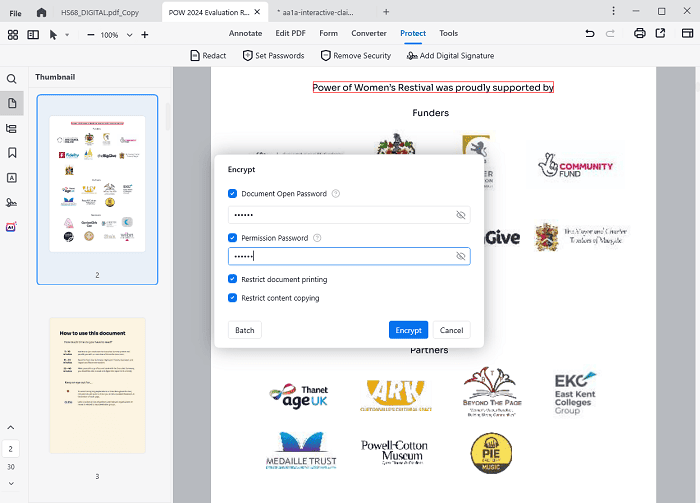 In some cases that you may need to apply the same action on multiple documents, you can click into the Batch process window and batch process multiple PDFs.