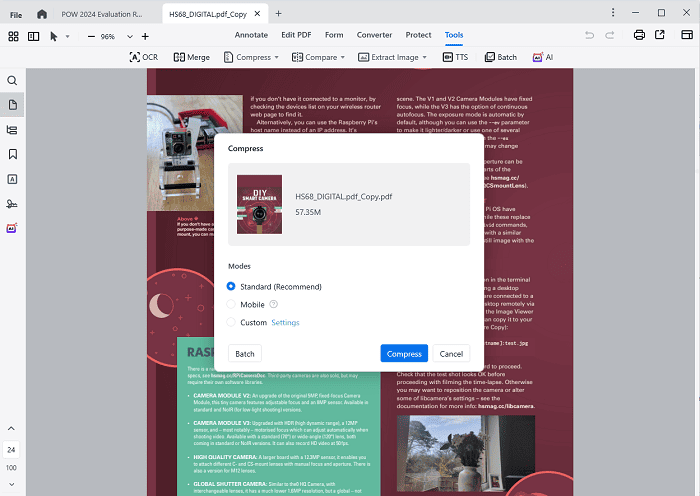 on the tool bar , select a compress mode and click Compress to save the compressed PDF file.