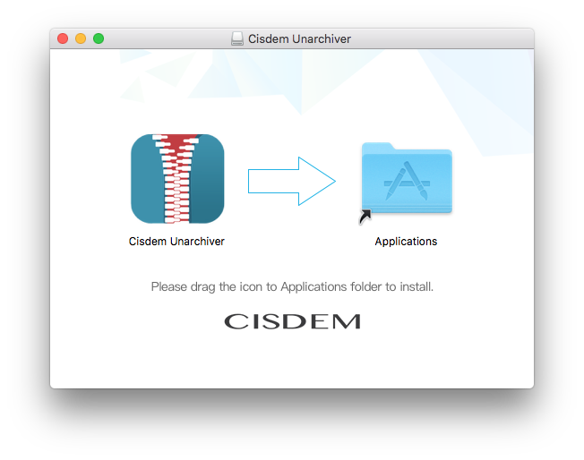 Drag the Cisdem Unarchiver icon to Applications folder.