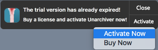 1. Go to Lauchpad or Applications folder, double click Cisdem Unarchiver to run the program, then click "Activate" > "Activate Now" in trial time limit reminder pop-up window in the top right corner.