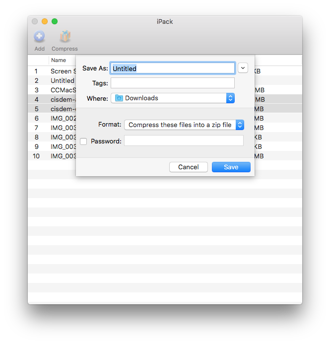 , a window will pop up to ask you to select a save location, select a format you need to compress to and also you are allowed to create a password to better protect the compressed archive.
