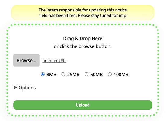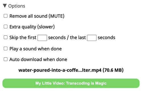 Step 6. A randomized text will appear on the bottom green bar, click on it to start uploading, transcoding, and compressing a video for Discord online.