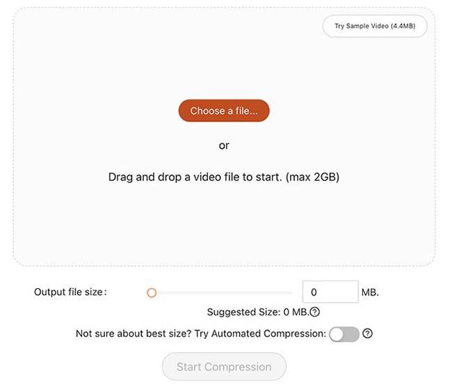 Step 2. Click “Choose a file” to import a video or drag-n-drop the video to the site.