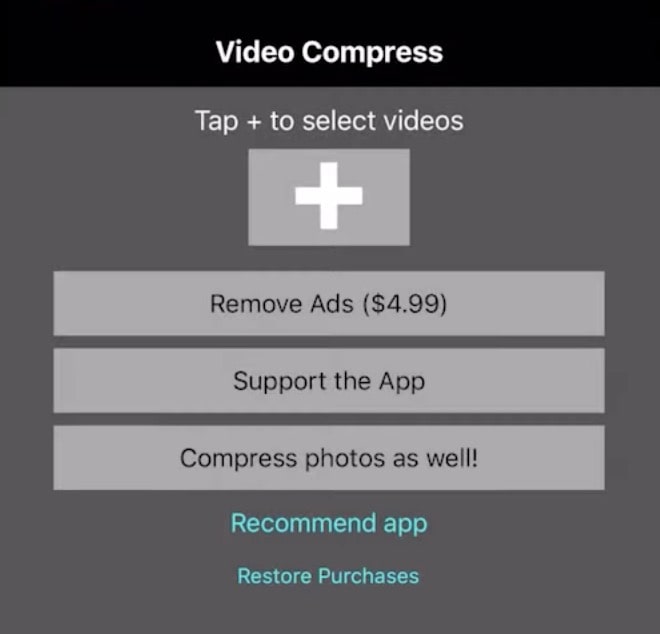 Step 2. Initiate the app. Tap the big “+” button to choose a video from your iPhone. Note: If this is your first time using the program, you need to allow it to access to your videos.