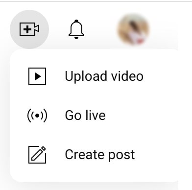 - In the top right corner of the page, click "Create" (the icon looks like a camera with a plus sign) > "Upload Video".