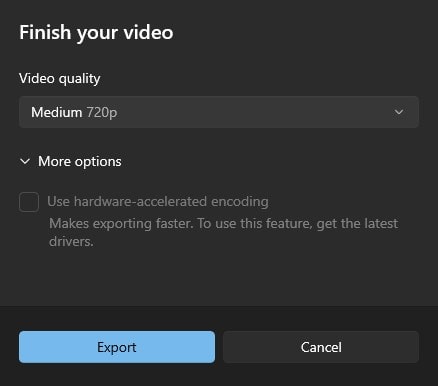 Hardware acceleration helped me boost compression speed by almost 30 minutes. It's just that not every PC supports it. - Click “Export” to make a video file smaller on Windows.