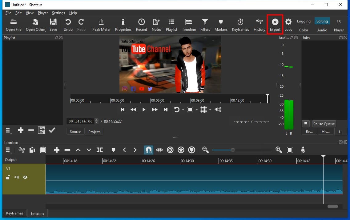 - Open Shotcut. Drag and drop the video straightly into the timeline.