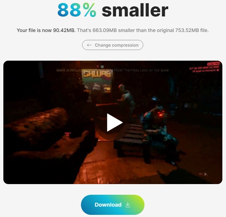 Preview: Quickly generate the first 20 seconds of compressed videos. For large videos, you don't need to wait a long time for the compression to finish before you can see how well it's working.
