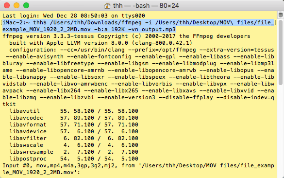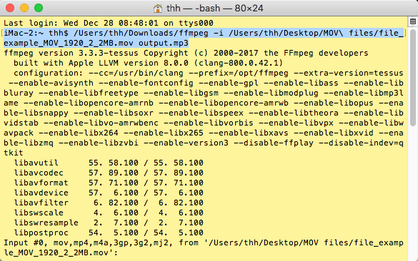 FFmpeg excels at transcoding video and audio files to a massive 1000+ formats. It applies cutting-edge encoding algorithms to handle multiple videos at once. Thanks to FFmpeg, converting MOV to MP3 on Mac or Windows can be done at a rapid speed and won’t cause an obvious diminish of the original quality.