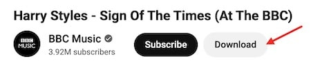 - Find the music you wish to download on YouTube and open it. You will see a “Download” button next to “Subscribe”.