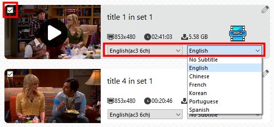 Step 4. Select the desired title, subtitle track and audio track.