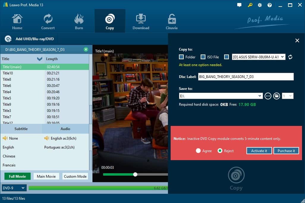 Note: When I download Leawo DVD Copy from the official website, what I will get is Leawo Prof. Media, which is a full-fledged tool covering several functions of handling DVDs. Each function, however, requires an extra fee. This test also indicates that the Leawo DVD copying speed is not satisfactory.