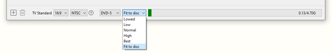 Even if your video size slightly exceeds the normal disc capacity, as long as it's within 15%, "Fit to Disc" option will intelligently re-encode and compress all videos to fit on a single disc. The quality will be good, too. Compression like that doesn’t usually make much visual difference on VHS and other SD sources.
