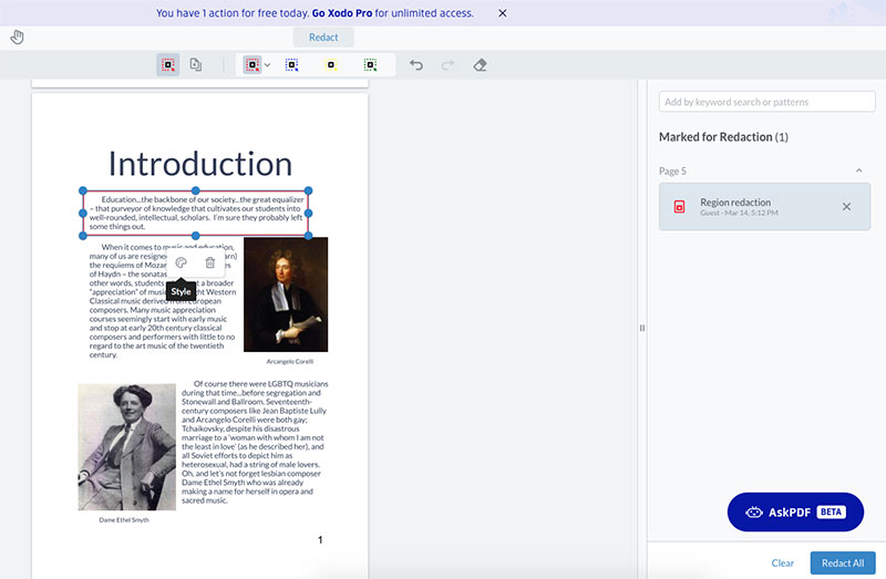 Note: If you use the redaction feature to black out text or images in PDF file the images, and pages will be removed permanently as soon as you apply redaction. You cannot Undo to restore the redacted content, so we recommend you save a copy of your PDF files before the redaction.