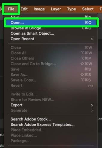 - Launch Photoshop and open the PDF on Photoshop by click "File > Open" in the menu.