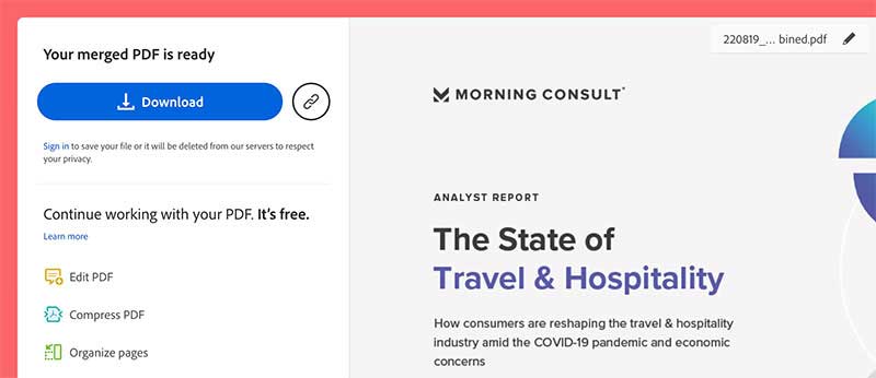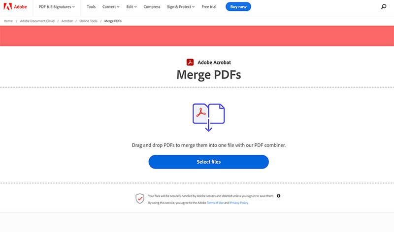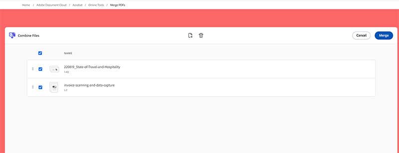 Combining PDF files with Adobe Acrobat’s Free online tool