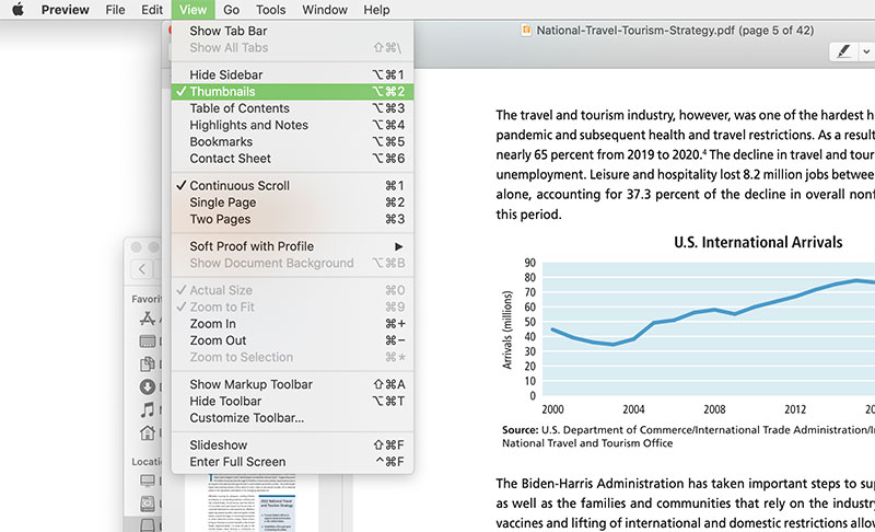- Go to View > Thumbnails. Then it will start to show page thumbnails in the left sidebar.