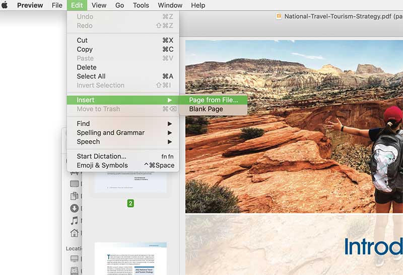 - Select thumbnail of the page where you want to insert the other PDF file. then click Edit > Insert > Page from File