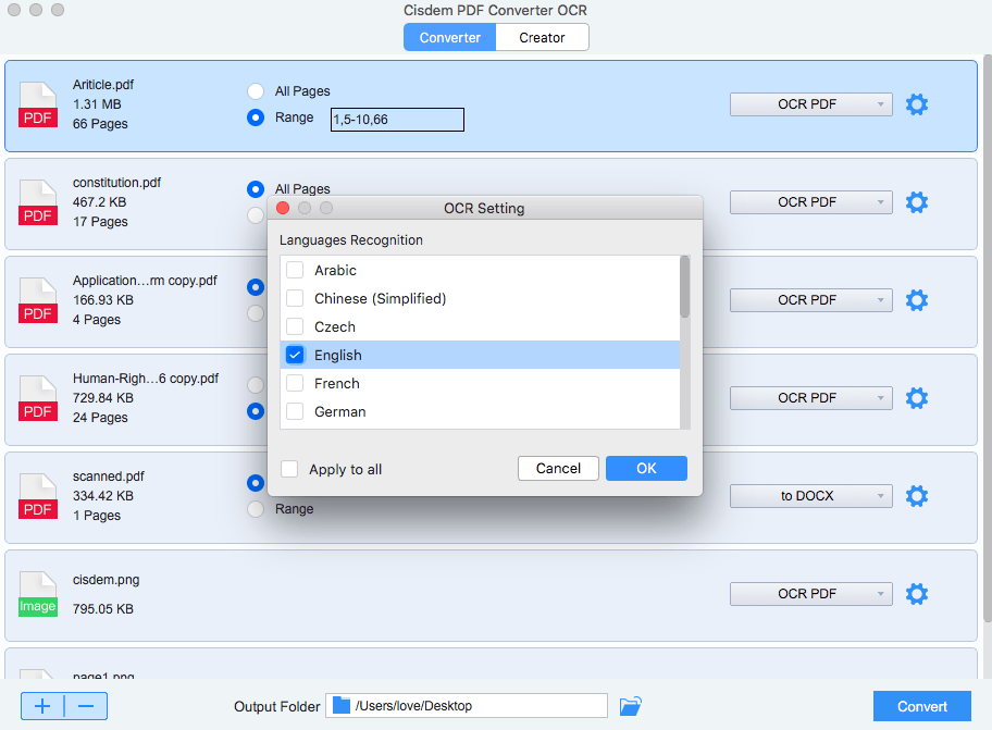 To make a PDF searchable, you need the aid of Cisdem PDF Converter OCR, a PDF converter for mac allowing users to convert native, scanned and images into searchable and editable PDF, or other 10+ formats. It supports batch conversion, OCR performance on more than 50 languages, while keeping original file quality. Even, it supports to create PDF from other document types.