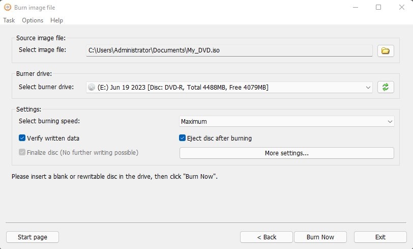 - At the bottom of the interface, click “Burn Now” to burn ISO to DVD.