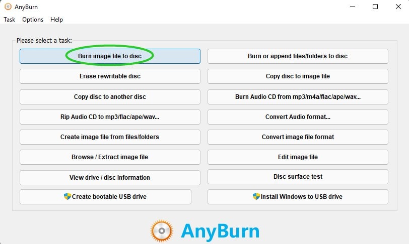 When it comes to disc image formats, AnyBurn has you covered, since it can convert and burn ISO, BIN, NRG, IMG, and many more to DVD. Furthermore, it is a versatile software that can copy DVD discs, burn and rip audio CDs, convert audio formats, create ISO from files/folders, create bootable USB drives, and so on.