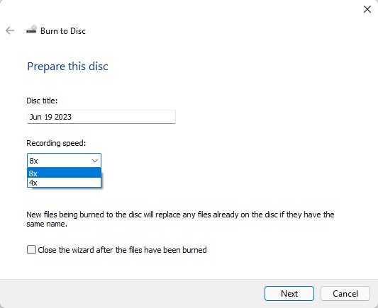 - Within the new window, choose a recording speed of either 4x or 8x.