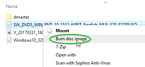 - Right-click the ISO file and select “Burn disc image” to bring up the “Windows Disc image Burner” window.