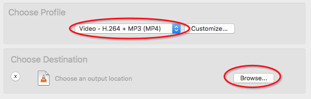 - Click Browse (Windows) or Save as File > Browse (Mac), choose a destination folder and name your file as "xxx.mp4". (VLC on Mac may still produce an M4V video, don't worry, you can simply change the suffix from ".m4v" to ".mp4" after the conversion.)