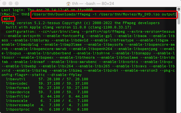 FFmpeg is a handy command-line tool for decoding and encoding media files. Changing an ISO file to MP4 is possible with two methods - re-encoding or remuxing. The former is slower, but still more recommended as it will produce an MP4 file encoded with H.264 like the above methods, smaller file size with better compatibility. While remuxing only changes the video container to MP4, the video codec is still MPEG-2 - the DVD video format that's not compatible with most players.