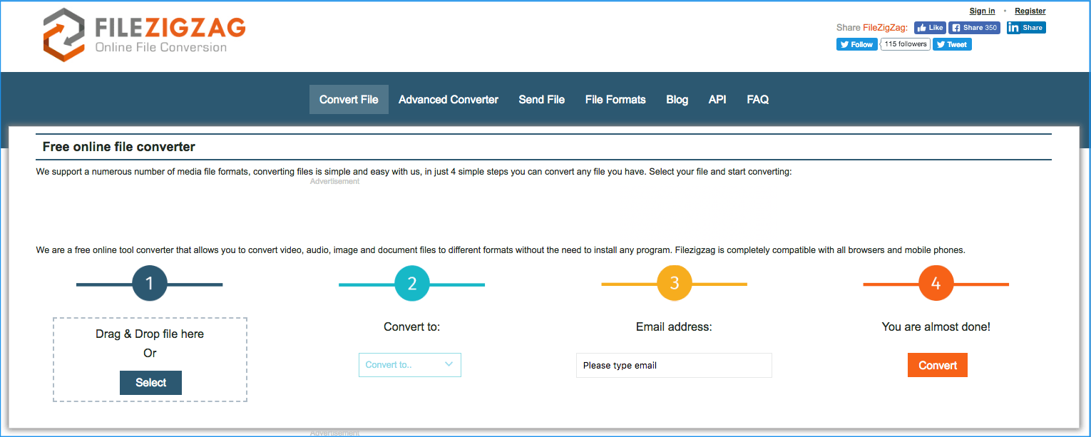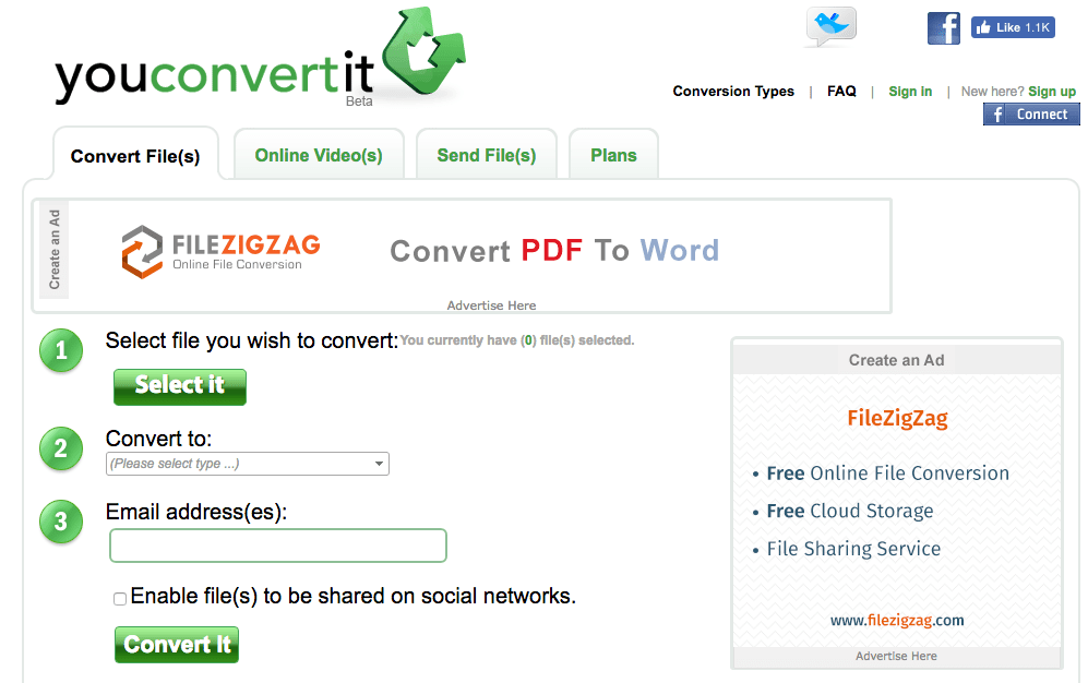 FileZigZag, an aptly named tool, features a basic set of controls for converting videos. It is not only an online video converter for handling MOV file won’t play and can perform multiple tasks like document conversion, images conversion, archive conversion, and so on. It's better than some online solutions but certainly not as powerful as a dedicated MOV file converter. The maximum upload size up to 500 MB and the output file can’t 2 GB.