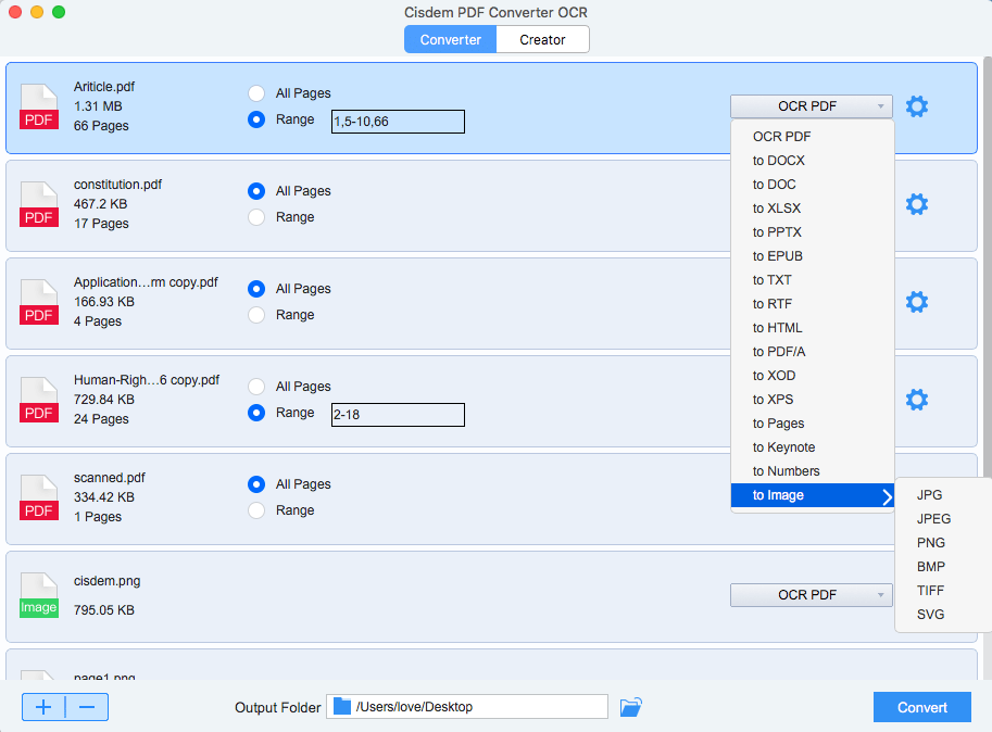 Cisdem PDF Converter OCR is a multi-platform program with OCR feature to create and convert PDFs. Its converter allows users to export PDF as 10+ formats, while its creator helps users to create PDF from existing Word, PowerPoint, ePub, CHM and other files. With its OCR feature, you can turn scanned PDF and images into searchable PDF, editable Word, Excel, PowerPoint, ePub, HTML, Pages, Keynote, Text accurately. Also, it supports batch convert PDF files.