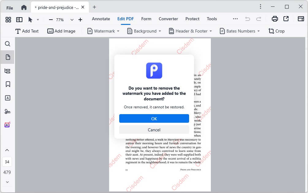 Luckily, Windows users and Mac users can use the Edit feature to remove watermarks from PDF, check the tutorial as follows: